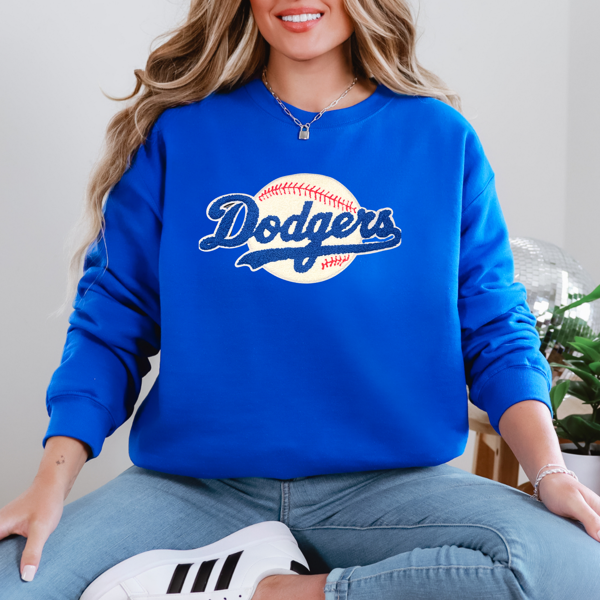 Los Angeles Blue Script Baseball Sweater
